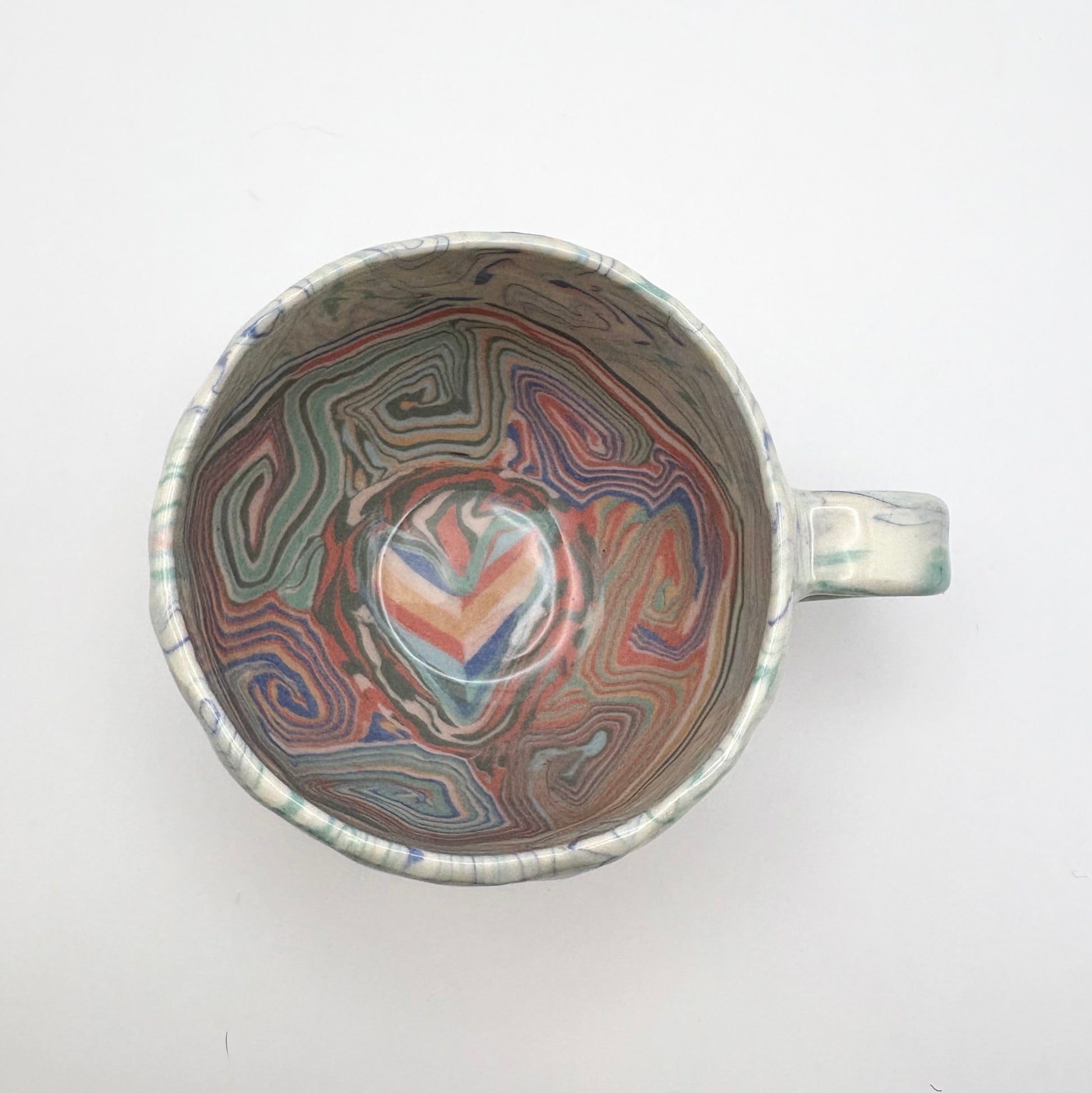 this vibrant piece showcases an explosion of colors with a flaming heart design at its center. Perfect for adding a touch of passion and warmth to your morning routine.