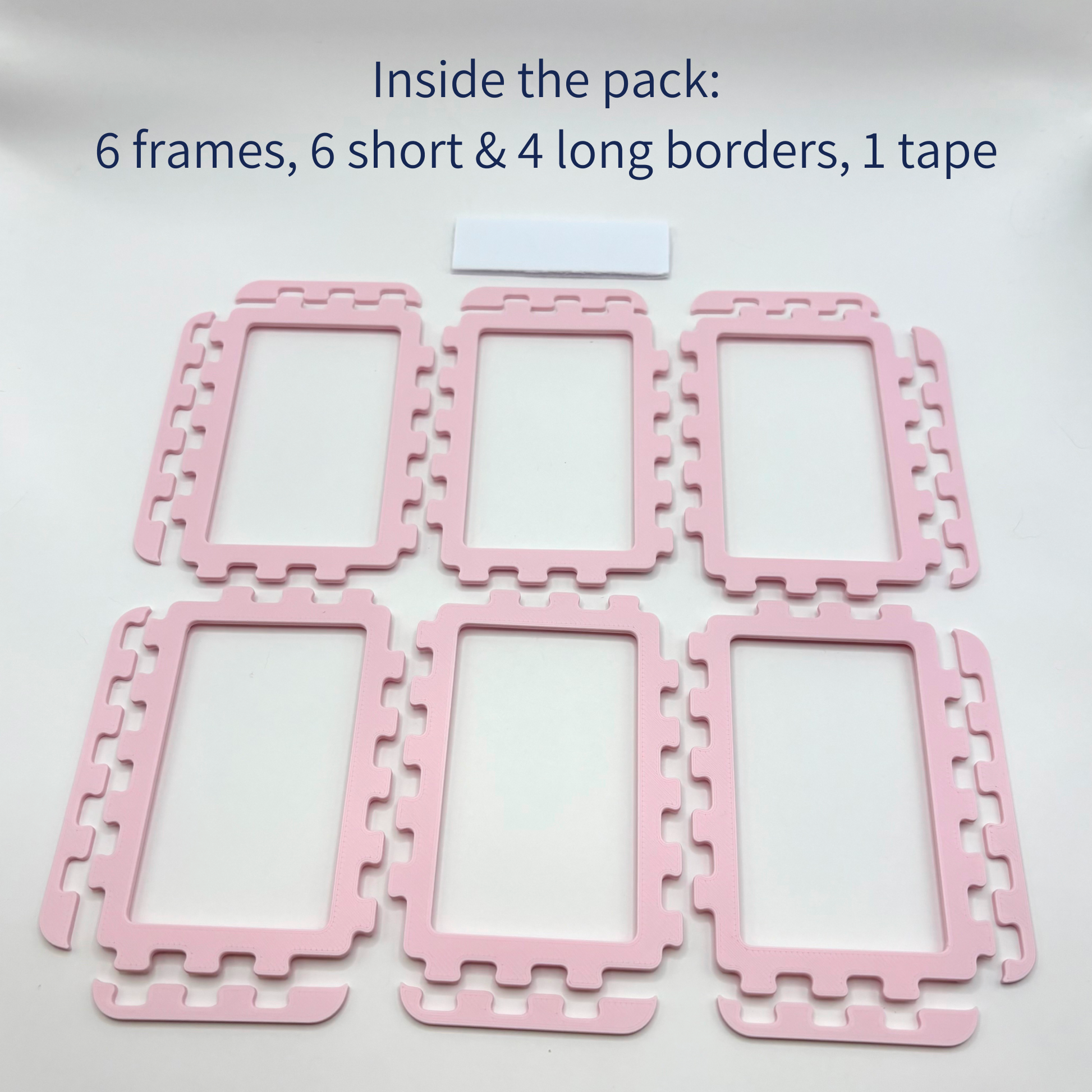 🤩 What’s Included: 6 photo frames • 6 short borders • 4 long borders • 1 Velcro strip